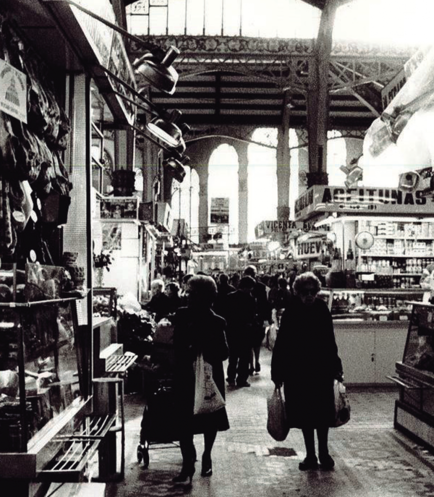 “La plaza, con sus puestos de venta al aire libre, sus toldos viejos, temblones al menor soplo de viento, y bañados por el rojo sol con una transparencia acaramelada, sus vendedores vociferantes, su cielo azul sin nube alguna, su exceso de luz que lo doraba todo a fuego, desde los muros de la Lonja a los cestones de caña de las verduleras, y su vaho de hortalizas pisoteadas y frutas maduras prematuramente por una temperatura siempre cálida, hacía recordar las ferias africanas, un mercado marroquí con su multitud inquieta, sus ensordecedores gritos y el nervioso oleaje de los compradores. (…….).”